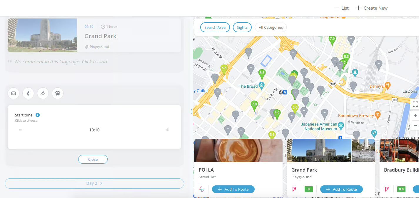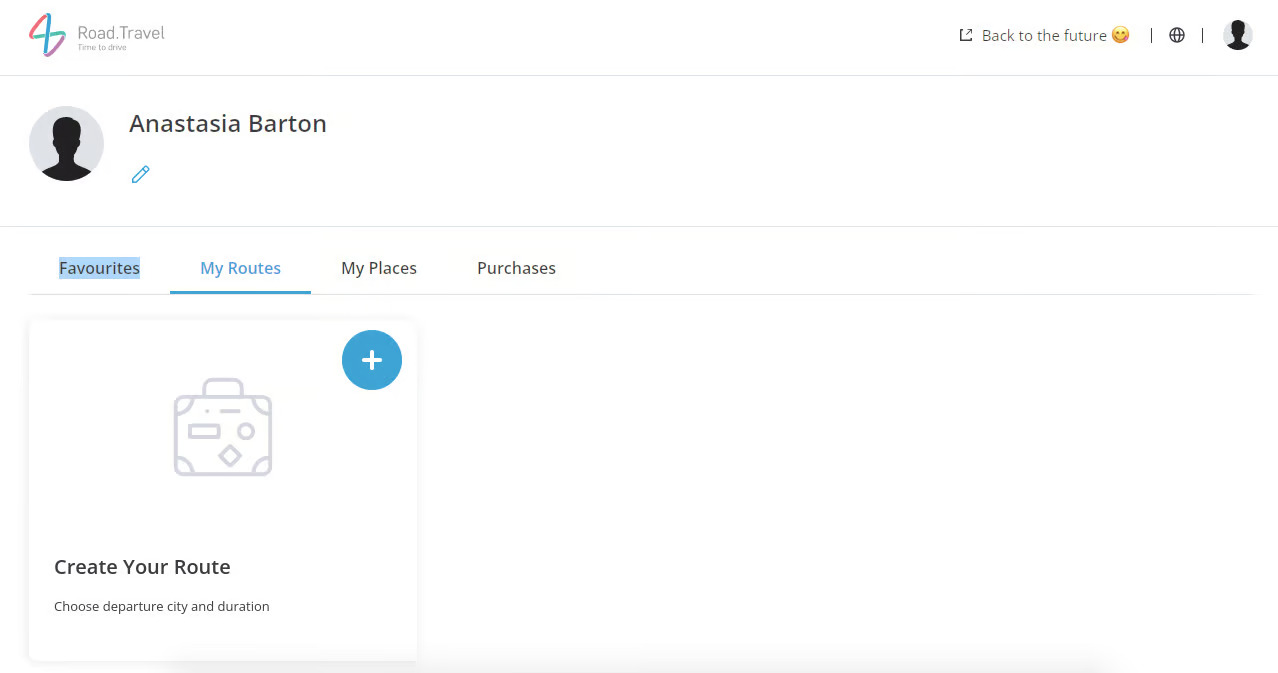 • You can create your own road trip guide in your profile. Go to My Routes tab. Click on “Create Your Route”.