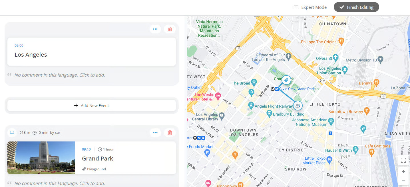You can add as many locations to your road trip as you want. After you are done, click “Finish Editing” in the top right corner.